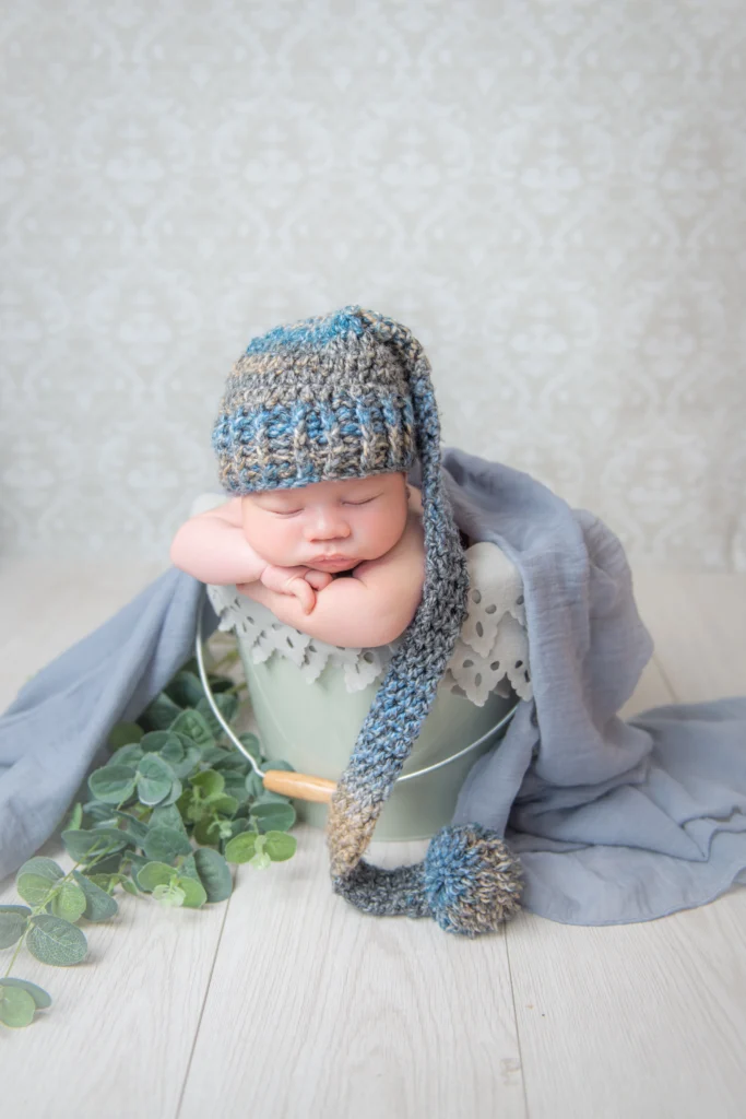 In my cosy little home studio in Leicester I have a variety of props that can be used while capturing your memories such as buckets, baskets, cute little baby hats and a variety of baby wraps and lets not forget the different types of backdrops too!